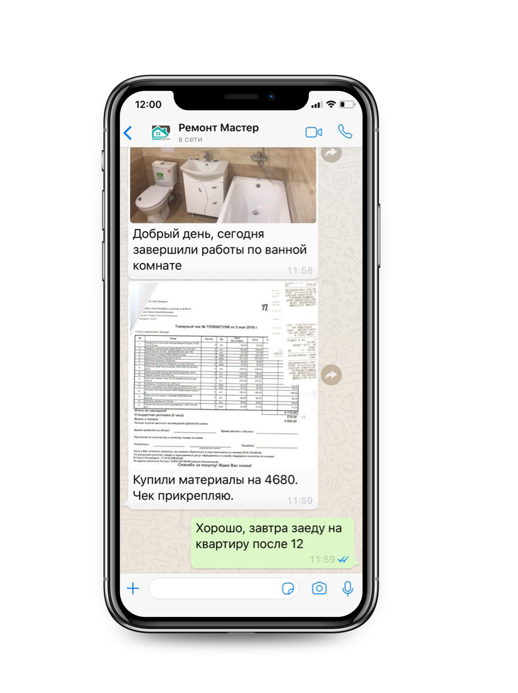 Будет создан чат, где закреплённые за вами менеджер и прораб будут отвечать на все ваши вопросы и держать вас в курсе всего процесса в режиме онлайн.