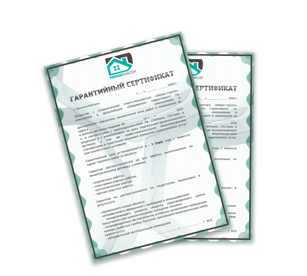 Предоставляем гарантийный сертификат по приемке ремонта